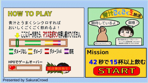 あほげー 第16回作品にエントリーした作品に、タイム計測、リセット機能、ツイート機能を追加しました。
